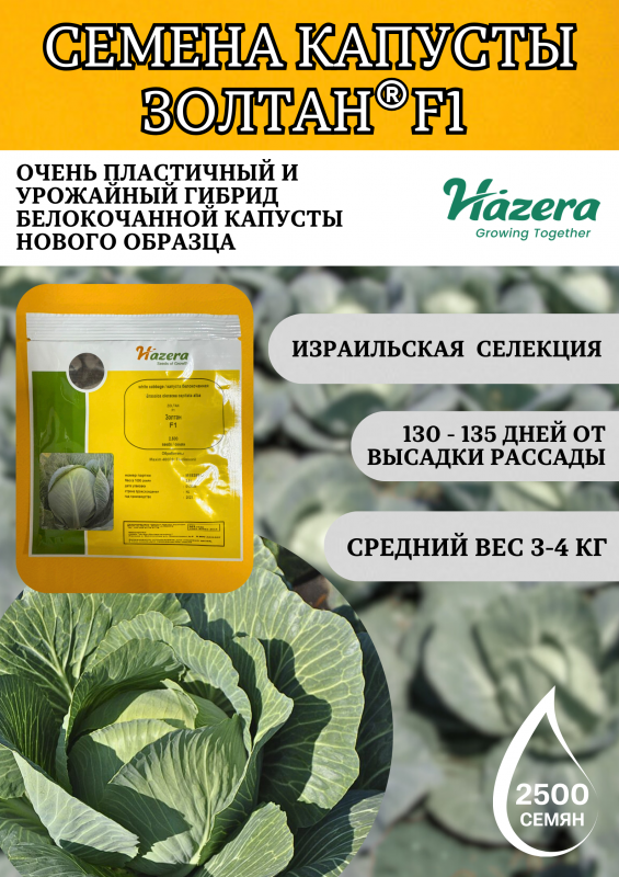 Золтан F1 2500 штук семена капусты белокочанной Hazera