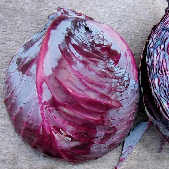 Растение мощное, с приподнятой розеткой. Кочан овальной формы, очень плотный, частично покрытый, массой 2-3,5 кг. Окраска насыщенная красно-фиолетовая с очень сильным восковым налетом, что придает кочану особую декоративность и дополнительную защиту. Мякоть на разрезе фиолетовая, структура великолепная.